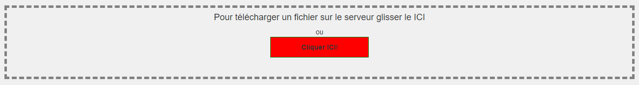 Pour téléverser des fichiers, vous pouvez soit glisser le fichier dans l'encadré, soit cliquer sur le bouton pour parcourir votre disque et sélectionner le fichier à transférer: